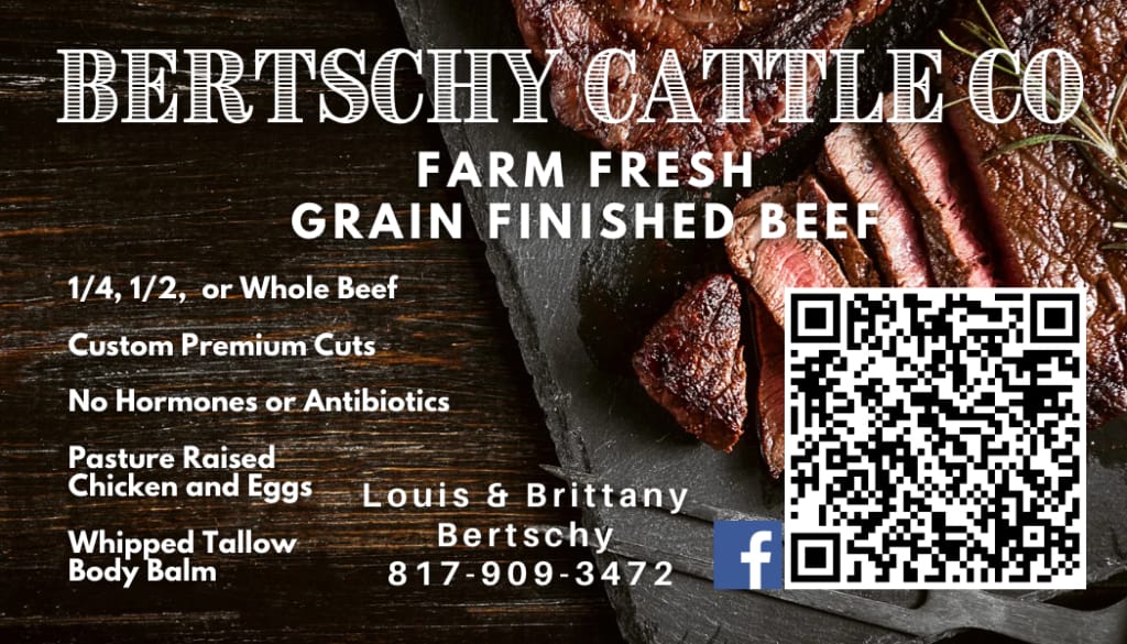 Farm fresh grain-finished beef by the 1/4 or larger. Located in Weatherford, TX. Taking reservations for November 2025 currently
